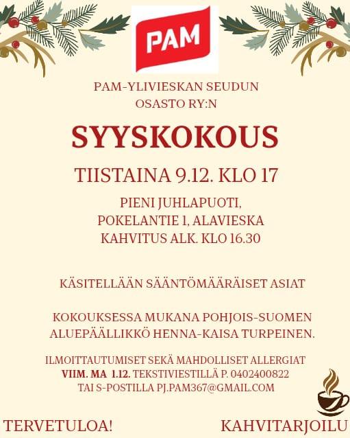 PAM-YLIVIESKJANSEUDUN OSASTO RY:N SYYSKOKOUS